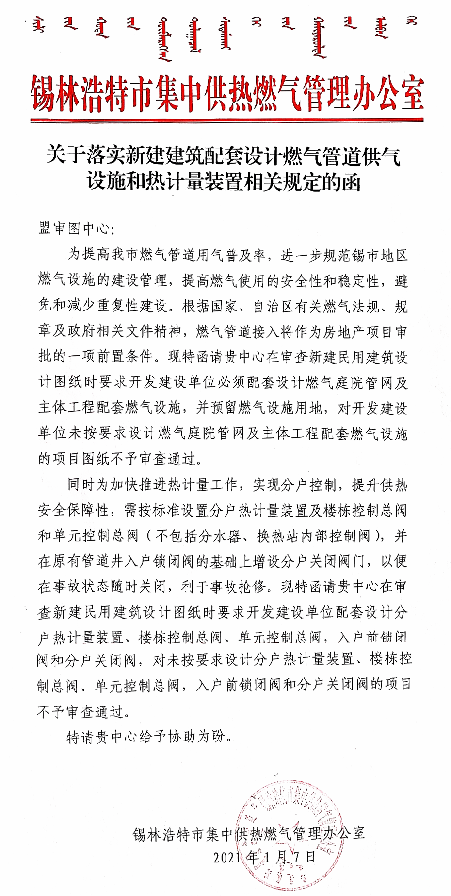 (錫供熱辦)關(guān)于落實新建建筑配套設(shè)計燃氣管道供氣設(shè)施和熱計量裝置相關(guān)規(guī)