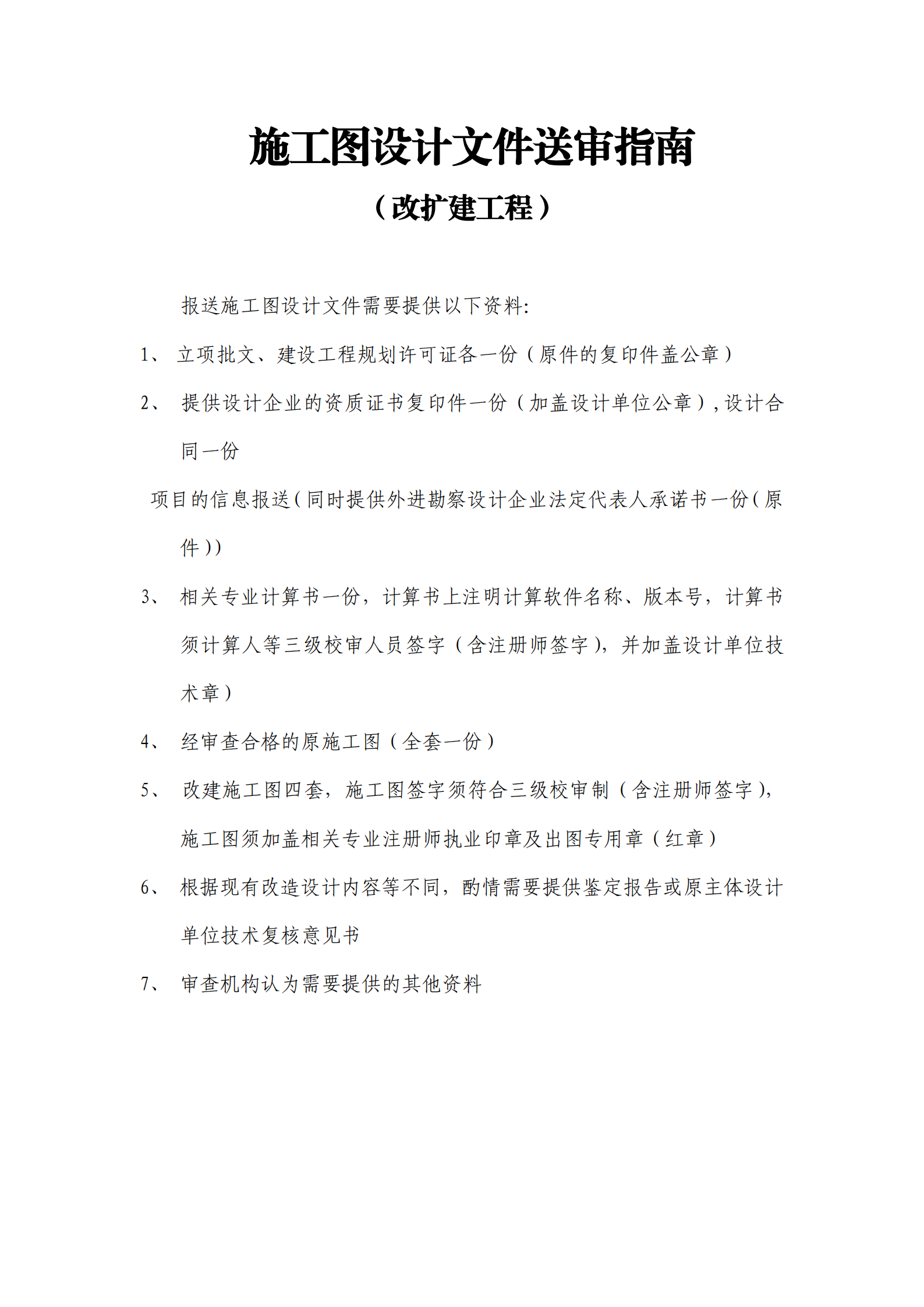 《改建擴(kuò)建》施工圖設(shè)計(jì)文件送審指南